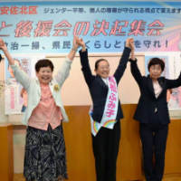 金権腐敗転換へ全力 広島県議補選31日告示 高松候補が決意 仁比氏迎え集会