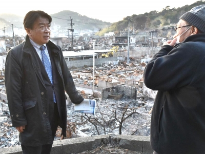 日本共産党の仁比聡平参院議員は1月18日、大規模火災発生から2カ月となる大分市佐賀関を調査し、被災者が抱える課題や復旧への思いなどを聞き取りました。斉藤由美子市議が同行しました。