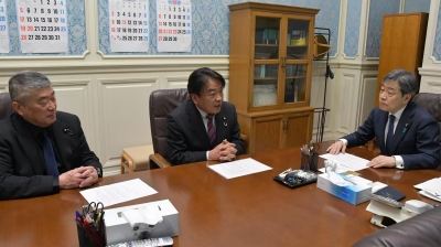 日本共産党の仁比聡平参院国対委員長は2月17日、国会内で、特別国会(18日召集)での本会議質疑の機会や時間を少数会派にも十分保障するよう青木一彦参院議院運営委員長に申し入れました。