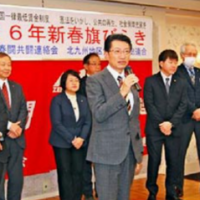 北九州春闘共闘連絡会と北九州地区労働組合総連合が共催しての旗開きが1月16日、北九州市小倉北区で行われました。日本共産党の田村貴昭衆院議員、仁比聡平参院議員、北九州市議団が連帯のあいさつをしました。 代表して訴えた田 …